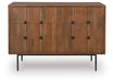 | Details | Made with solid mango wood, Back made with mango wood veneer and engineered wood substrate, Medium brown finish, 2 push magnet doors, 2 fixed shelves, Openings in back for electronics, Minor assembly required, simply lay flat and attach feet | |