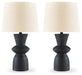 Turn on the brilliance and modern flair of this table lamp set. The angular silhouette and intriguing base in distressed black are the definition of bold style. These lamps pair wonderfully with contemporary furniture.