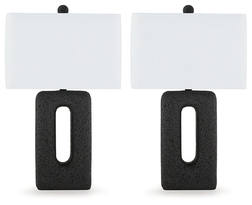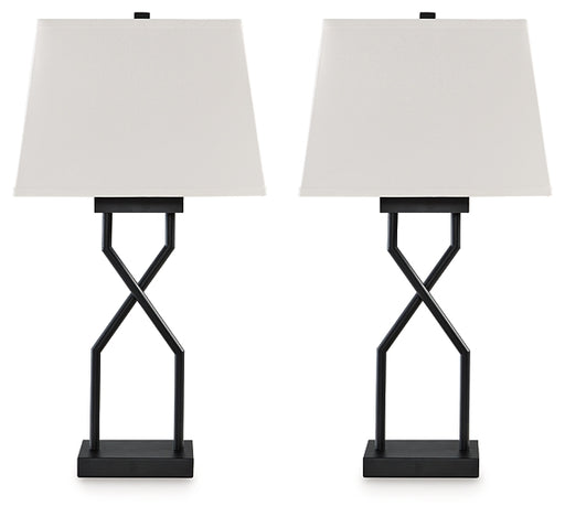 Signature Design by Ashley®Turn on the brilliance and modern flair of this table lamp set. The angular silhouette and intriguing base in distressed black are the definition o...