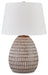 Shine a casual light on your good taste with this table lamp. A distressed beige and white finish on its metal base adds a laid-back simplicity to your existing decor. What an illuminating way to spruce up your space.