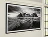 If you have your sights set on a striking landscape, this wall art is a natural wonder. Staggeringly beautiful, the framed black and white print showcases majestic mountains and a meandering stream. This moody and marvelous piece adds an air of dramatic beauty to your modern decor.
