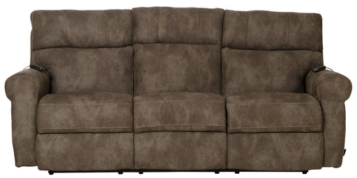 CatnapperThe WESTPORT power lay flat reclining sofa features a Farmhouse Casual style with its Greek Key arm treatment, soft body fabric, and 5 included acc...