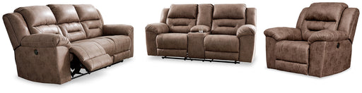 Signature Design by Ashley®Consumer's ChoiceStoneland Sofa, Loveseat and ReclinerSpecifications Details Includes power reclining sofa, power reclining loveseat and power rocker recliner, Dua...