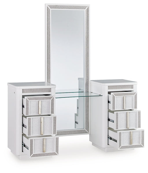 Signature Design by Ashley®Transform your bedroom with this chic vanity and mirror. Its modern design and glamorous details create a sophisticated retreat. The built-in LED l...
