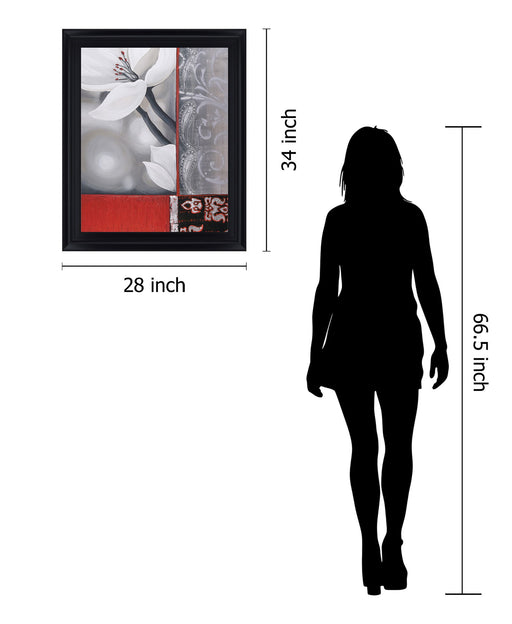 Classy LivingThis striking piece captures the delicate beauty of white blossoms set against a dynamic backdrop of muted grays and vibrant reds. The bold interpl...