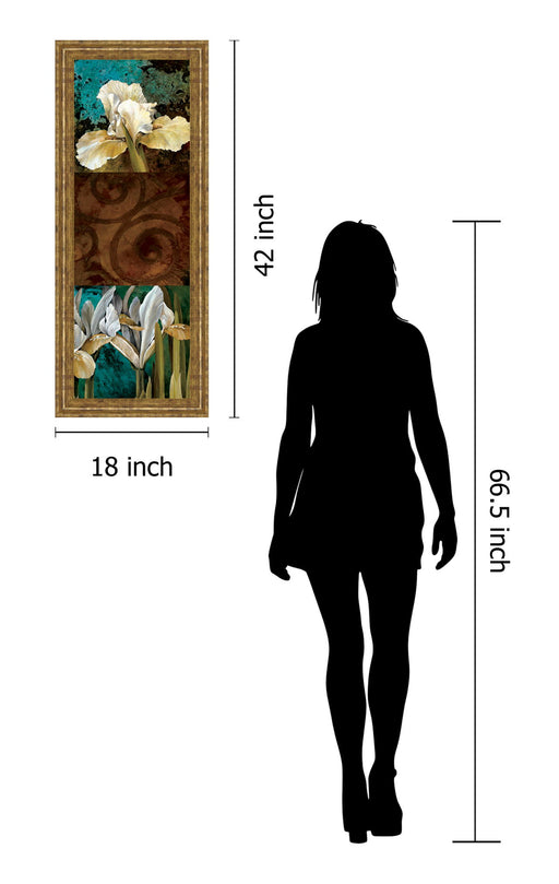 Classy LivingStep into a tranquil garden scene where delicate white irises unfurl gracefully against a rich tapestry of teal and earthy browns. This mixed media...