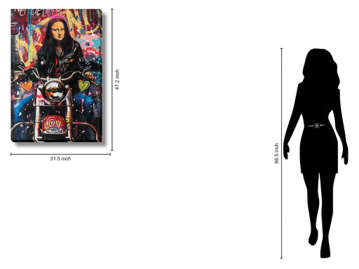 Classy LivingRebel Mona: Love on Wheels is a striking hand-painted acrylic canvas that reimagines the iconic Mona Lisa with a contemporary, rebellious twist. Th...