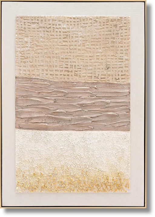 Classy Living“Desert Gold Luxe Texture” is a captivating mixed media wall art piece that brings a tactile dimension to contemporary interiors. This 3D canvas fe...