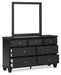 | Details | B687B9: Includes California king panel headboard, footboard and rails, Made with hardwood solids, birch veneer and MDF substrate, Black painted finish, Thick profiled tops, Tapered feet, Foundation/box spring required, sold separately, Mattress available, sold separately, Assembly required, Bed is compatible with an adjustable base, B687B1: Includes dresser and mirror, Made with hardwood solids, birch veneer and MDF substrate, Black painted finish, 7 smooth-gliding drawers with dovetail construction and ball-bearing side glides, Round metal drawer knobs with satin nickel-tone finish, Framed drawer fronts, Tapered feet, Mirror attaches to back of dresser, Assembly required, B687-92: Made with hardwood solids, birch veneer and MDF substrate, Black painted finish, 2 smooth-gliding drawers with dovetail construction and ball-bearing side glides, Round metal drawer knobs with satin nickel-tone finish, Framed drawer fronts, Tapered feet, | |