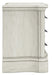 | Details | B980B5: Includes headboard, footboard and rails, Made with hardwood solids, spruce veneer, MDF substrates and cast resin components , Antiqued white painted finish, Polyester upholstery, Button tufting, Foundation/box spring required, sold separately, Mattress available, sold separately, Assembly required, B980B1: Includes dresser and mirror, Made with hardwood solids, spruce veneer, MDF substrates and cast resin components, Antiqued white painted finish, 9 drawers with fully finished interiors, French and English dovetail construction and ball-bearing side glides, Metal bar pulls with aged pewter-tone finish, Mirror attaches to back of dresser, B980-93: Made with hardwood solids, spruce veneer, MDF substrates and cast resin components, Antiqued white painted finish, 3 drawers with fully finished interiors, French and English dovetail construction and ball-bearing side glides, Metal bar pulls with aged pewter-tone finish, 110V power supply with dual USB charging ports, Power cord included; UL Listed, | |