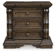 | Details | B947B5: Includes upholstered panel headboard, upholstered panel footboard and panel rails, Made with hardwood solids, oak and ash swirl veneers, MDF substrates and cast resin components, Dark brown finish, Polyester upholstery with button tufting, Foundation/box spring required, sold separately, Mattress available, sold separately, Assembly required, B947B1: Includes dresser and mirror, Made with hardwood solids, oak and ash swirl veneers, MDF substrates and cast resin components, Dark brown finish, 6 smooth-gliding drawers with dovetail construction (top drawer felt lined), Drawer pulls with antiqued goldtone finish, Mirror attaches to back of dresser, B947-93: Made with hardwood solids, oak and ash swirl veneers, MDF substrates and cast resin components, Dark brown finish, 2 smooth-gliding drawers with dovetail construction (top drawer felt lined), Pull-out tray behind bottom drawer, Drawer pulls with antiqued goldtone finish, 110V power supply with dual USB charging ports, Power cord included; UL Listed, | |