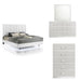 The Europa Panel Wall Bed offers a blend of modern elegance and practical design. This set includes a panel bed, two nightstands, and two nightstand back panels. The sleek, integrated headboard wall and nightstands creates a seamless and sophisticated look, enhanced by the white finish, mylar accents, and acrylic drawer pulls. Built with quality craftsmanship, the eco-friendly manufactured woods ensure durability, while the surfaces are finished with a glossy white topcoat and padded upholstery for added comfort. The bed features upscale extras like soft blue base lighting that reflects off the silver mylar bases, casting an ambient glow. The sturdy drawers, constructed with dovetail joinery and ball bearing glides, provide durable, easy-glide storage with snag-free interiors. The 2-drawer nightstands offer ample storage for bedside essentials. Choose the Europa Panel Wall Bed for a luxurious and contemporary addition to your bedroom.
