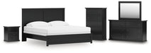 Maribel King Panel Bed with Mirrored Dresser, Chest and Nightstand