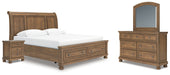 Feddinger King Storage Sleigh Bed with Mirrored Dresser and Nightstand