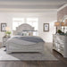 Opt for an elegant display. A refined yet relaxed feel describes the Magnolia Manor panel bed, dresser, and mirror. Crafted of poplar solids with white oak and birch veneers, this kit features an antique white finish with heavy artistic chipping. The bed features arched crowning and dog bone accents on each corner effortlessly adding both definition and character, completing your look. The dresser and mirror duo are the perfect way to accent your room. Weathered brown whitewash tops paired with the antique white finish creates a truly unique look. Softness is added to the design with canted corners and rounded pilasters, accompanied by bead molding on each drawer front. Warm antique finishes and artistic distressing along with grand scale creates a group to be passed to generations.