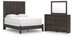 Details PCB3370B2: Includes headboard panel, headboard posts, footboard and rails, Made with engineered wood (MDF/particleboard/plywood) and decorative laminate for the right balance of affordability and durability , Dark charcoal finish over replicated oak grain, Decorative laminate replicates natural or man-made material surfaces with consistent color, pattern and texture, Foundation/box spring required, sold separately, Mattress available, sold separately, Assembly required, PCB3370B1: Includes dresser and mirror, Made with engineered wood (MDF/particleboard/plywood) and decorative laminate for the right balance of affordability and durability , Dark charcoal finish over replicated oak grain, Decorative laminate replicates natural or man-made material surfaces with consistent color, pattern and texture, Recessed hand grabs create hardware-less effect, 6 smooth-gliding drawers, Drawer interiors are lined with a faux linen laminate for a clean, finished look , Safety is a top priority, clothing storage units are designed to meet the most current standard for stability, ASTM F 2057 (ASTM International), Drawers extend out to accommodate maximum access to drawer interior while maintaining safety, Mirror attaches to back of dresser; can also be mounted on wall horizontally or vertically, Assembly required,