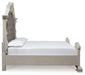 | Details | Includes upholstered panel headboard, footboard, rails and slats, Made with hardwood solids, oak and ash swirl veneers, MDF substrates and cast resin components, Side rails feature laminated solid hardwood slat support rails (or LVL) with glued and screwed blocking for added strength, Antiqued white finish, Polyester upholstery, Foundation/box spring required, sold separately, Mattress available, sold separately , Assembly required | |