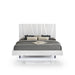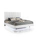 The Europa Panel Bed offers a perfect blend of modern elegance and quality craftsmanship. This set includes a panel headboard, footboard, two side rails, and four mattress support slats. Its sleek design is achieved with a majestic headboard, glossy finish, and modern mylar accents, creating a sophisticated look. The eco-friendly manufactured woods are assembled with durability in mind, finished with a glossy topcoat and padded upholstery for added comfort. Upscale extras include soft blue base lighting that reflects off the silver mylar bases, casting an ambient glow. This bed is the ideal choice for those seeking a luxurious and contemporary centerpiece for their bedroom.