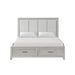 The Fiona Storage Bed is a testament to craftsmanship and design. Constructed with Acacia solids, manufactured woods, and oak veneer, this bed is a harmonious blend of strength and the natural allure of wood. The wood grain comes to life under a multi-step finish, featuring wire brushing and white glazing, culminating in a mist gray hue that complements any room. Classic elements like picture frame moldings and tapered legs are paired with modern drawer pulls to create a timeless piece. Its transitional style seamlessly adapts to both traditional and contemporary spaces. For comfort that doesn’t compromise on luxury, the headboard is upholstered in soft, 100% polyester fabric, offering support for bedtime reading. The footboard integrates two spacious drawers, providing a clever storage solution for blankets and linens, optimizing your space with elegance and efficiency.