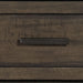 Add a natural feeling to your living space using the Thornwood Hills panel bed. The rock beaten gray finish is highlighted by saw cuts and hammered metal strip accents across the planked headboard and storage footboard. Crafted with rubberwood solids and mango veneers, this piece features fully stained interior drawers accompanied by framed drawer fronts. The footboard features full extension drawers equipped with hammered metal hardware for easy opening. Never question the reliability of the bed due to the bolt-on rails and center supported slat system.