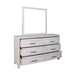 Introducing the Biscayne Six Drawer Dresser, meticulously crafted with durable manufactured wood and adorned with an Eco-Friendly decorative laminate for enduring strength and stability. Its finish creates a light, airy ambiance, perfect for unwinding at the end of a busy day. The dark iron finish drawer pulls add a contemporary touch, contrasting beautifully with the dresser's clean design. Versatile in style, this dresser seamlessly blends with various motifs, from coastal to contemporary, farmhouse to urban rustic. Plus, with time-tested drawer construction featuring English dovetail joinery and smooth metal center drawer glides, functionality meets elegance in this essential bedroom piece.