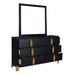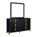 Introducing the Empire Mirror in sleek black, a stunning addition to any space. Crafted with durable eco-friendly materials and a sophisticated finish, this mirror exudes contemporary elegance. Its black framed, beveled low distortion design ensures a true reflection, adding depth and style to your decor.