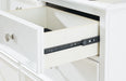| Details | Includes dresser and mirror, Made with hardwood solids and MDF substrate, White painted finish, 7 smooth-gliding drawers with dovetail construction and ball-bearing side glides, Round metal drawer knobs with satin nickel-tone finish, Tapered feet, Mirror attaches to back of dresser, Assembly required | |