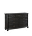 Indulge in the timeless elegance of this exquisite bedroom collection, a true embodiment of classic sophistication. Each piece is masterfully constructed with a striking charcoal finish that commands attention while accentuating the intricate detailing and flowing lines. The magnificent bed, with its bold headboard, has an optional pediment and is upholstered to create a stunning contrast that promises opulent comfort. Complementing the bed are the sleek nightstands and capacious dresser, each graced with antique finish hardware against the matte background.
