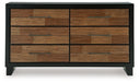 Experience the captivating allure of this dresser, an effortless blend of casual and refined aesthetics. Its two-tone finish combines satin black with a rich brown wood tone for a modern, relaxed vibe that you'll love waking up to. Perfectly suited for your contemporary home, this dresser has plenty of drawer space to tuck away your wardrobe and spare bed linens.