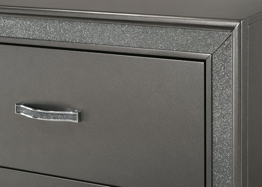 Crown MarkThis bedroom collection is the embodiment of sleek, contemporary design, characterized by its rich gunmetal finish and distinctive textured front p...