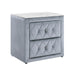This majestic nightstand is a statement piece that exudes luxury and grandeur, perfect for creating a dramatic bedroom setting. It boasts a finish that encapsulates modern opulence, while its sumptuous, tufted nightstand are upholstered in a rich velvet fabric that offers an indulgent tactile experience.