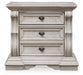 Inspired by the grandeur and grace of European traditional style, this opulent nightstand is nothing short of stunning. Large-scale decorative scrolled pilasters, along with an ash swirl border and walnut inlay crowning the top, are sure to make a sophisticated statement in your restful retreat. The timeless antiqued white coloration and bronze-tone drawer pulls lend an air of subtle elegance to this sumptuous piece. And a hidden pull-out tray keeps your small treasures out of sight.