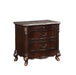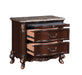 The Constantine Marble Top Two Drawer Nightstand by Royal Classics is a blend of timeless elegance and modern functionality. This nightstand, available in a rich Cherry finish, is crafted from Solid Pine and Fancy Face Birch Veneers, ensuring heirloom quality and long-lasting beauty. The laborious multi-step finish accentuates the wood's natural charm, while burnished gold tipping on the intricate carvings adds a luxurious touch. The French Traditional design, featuring elaborate 18th-century Rococo style ornamentation, brings a touch of regal elegance to your home. The nightstand is built with quality inside and out, boasting drawers constructed with French and English Dovetail Joinery for durability and smooth operation on full-extension glides. The finished interiors provide snag-free storage. Sophisticated touches include a genuine marble top that follows the curved shaping of the furniture, bowfront drawers, and cabriole legs. The nightstand also offers modern comforts such as a velvet-lined top drawer, a pull-out snack tray, USB charging ports, and a hidden storage area. The Constantine Marble Top Two Drawer Nightstand is a perfect blend of opulence and practicality, making it an exquisite addition to any bedroom.