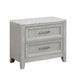 The Fiona Nightstand combines durability with timeless design. Crafted from Acacia Solids, Manufactured Woods, and Oak Veneer, it seamlessly blends the beauty of real wood with robust construction. The multi-step finishing process, including wire brushing and white glazing, results in a light, mist gray finish that enhances the natural wood grain. Sophisticated Details such as picture frame moldings, tapered legs, and sleek drawer pulls showcase its classic aesthetic. The genuine marble top, in elegant white and gray, adds a rich accent and perfectly complements the wood finish. Whether your decor leans traditional or contemporary, the Fiona Nightstand’s transitional style effortlessly fits in. Practicality meets craftsmanship with time-tested drawer construction. French front and English back dovetail joinery ensures strength, while full-extension glides allow smooth operation. Thoughtful extras include sanded and sealed drawers to prevent clothing snags, and a felt-lined top drawer to protect delicate items. The Fiona Nightstand is a versatile addition to any bedroom, combining style and functionality.