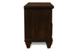 The Sevilla 2-Drawer Nightstand in walnut is a perfect blend of timeless craftsmanship and functional elegance, making it an ideal addition to any bedroom. Crafted from solid Acacia wood and enhanced with Acacia veneers, this nightstand features a rich, hand-distressed walnut finish that exudes a vintage charm. Its design artfully combines traditional elegance, rustic charm, and colonial craftsmanship, creating a warm and inviting ambiance while commanding attention with its sturdy construction. The spacious drawers, crafted with masterful dovetail joinery and lined with luxurious velvet in the top drawer, offer smooth, snag-free storage, gliding effortlessly on precision-engineered, full-extension drawer glides. A discreet USB charging connection on the back adds a modern convenience, ensuring your devices are always powered and within easy reach. Perfectly balancing style and durability, this nightstand serves as a captivating focal point in any classic, cozy, or historically inspired space.