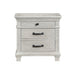 The Silver Sands Nightstand is a marvel of durable, quality construction, crafted from solid pine, manufactured woods, and Oak wood veneers, ensuring strength and stability. This versatile piece embodies transitional style, blending clean, simple lines with a rustic wood finish for a calm, inviting atmosphere. The misty gray finish, applied through a meticulous multi-step process, showcases the wood's natural grain and mineral patterns with a light, weathered look. Elegant design elements, such as the raised base, full return and dentil moldings, and contrasting hardware, lend a sophisticated appeal. Heirloom-quality drawers with durable dovetail joinery and three-stage steel ball glides provide smooth, full-extension operation and support for heavy loads. With three spacious drawers, including a velvet-lined top drawer for delicate items, this nightstand offers ample storage and functionality. A perfect addition to any bedroom, combining style, durability, and practicality.
