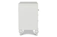 The Valentino 3 Drawer Nightstand is a luxurious addition to any bedroom. Crafted from a blend of manufactured and solid woods, it is built to last while maintaining its distinctive appeal. Its glamorous design includes a gleaming finish, mirrored trims, crystal-studded drawer pulls, and alligator-embossed inlays, embodying the essence of Hollywood glamour. In addition to its stylish appearance, this nightstand offers practicality with its thoughtful details. The heirloom-crafted English dovetailed drawers boast finished interiors to prevent snags and roll smoothly on full-extension ball-bearing glides, ensuring easy access to your belongings. This nightstand provides an abundance of storage with its three spacious drawers, making it perfect for keeping bedside essentials organized and within reach. With its combination of durability, elegance, and functionality, the Valentino 3 Drawer Nightstand is a must-have piece for creating a glamorous bedroom retreat.