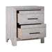Meet the Biscayne 2 Drawer Nightstand, meticulously crafted with durable manufactured wood and adorned with an Eco-Friendly decorative laminate for enduring strength and stability. Its Driftwood finish creates a light, airy ambiance, perfect for unwinding at the end of a busy day. The dark iron finish drawer pulls add a contemporary touch, contrasting beautifully with the nightstand's clean design. Versatile in style, this nightstand seamlessly blends with various motifs, from coastal to contemporary, farmhouse to urban rustic. Plus, with time-tested drawer construction featuring English dovetail joinery and smooth metal center drawer glides, functionality meets elegance in this essential bedroom piece.