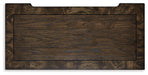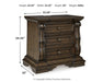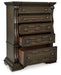 Details B947B5: Includes upholstered panel headboard, upholstered panel footboard and panel rails, Made with hardwood solids, oak and ash swirl veneers, MDF substrates and cast resin components, Dark brown finish, Polyester upholstery with button tufting, Foundation/box spring required, sold separately, Mattress available, sold separately, Assembly required, B947B1: Includes dresser and mirror, Made with hardwood solids, oak and ash swirl veneers, MDF substrates and cast resin components, Dark brown finish, 6 smooth-gliding drawers with dovetail construction (top drawer felt lined), Drawer pulls with antiqued goldtone finish, Mirror attaches to back of dresser, B947-46: Made with hardwood solids, oak and ash swirl veneers, MDF substrates and cast resin components, Dark brown finish, 5 smooth-gliding drawers with dovetail construction (top drawer felt lined), Drawer pulls with antiqued goldtone finish, B947-93: Made with hardwood solids, oak and ash swirl veneers, MDF substrates and cast resin components, Dark brown finish, 2 smooth-gliding drawers with dovetail construction (top drawer felt lined), Pull-out tray behind bottom drawer, Drawer pulls with antiqued goldtone finish, 110V power supply with dual USB charging ports, Power cord included; UL Listed,