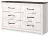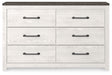 | Details | Made of engineered wood (MDF/particleboard), and decorative laminate, White rustic finish with replicated cedar grain, Rustic gray planked replicated oak grain with authentic touch, 6 smooth-gliding drawers with faux linen lining, Large scale dark colored handles, Safety is a top priority, clothing storage units are designed to meet the most current standard for stability, ASTM F 2057 (ASTM International), Drawers extend out to accommodate maximum access to drawer interior while maintaining safety, Assembly required | |