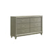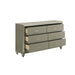 Meet the Lumina Dresser, a sturdy companion crafted from solid Rubberwood and durable manufactured wood, coated in an eco-friendly decorative laminate for enduring strength. Its sleek exterior boasts a high gloss gray finish, complemented by embossed silver laminate drawer fronts adorned with clear acrylic pulls, adding a touch of glam to any space. Inside, each drawer is meticulously constructed with English dovetail joinery, finished interiors, and full-extension glides for seamless functionality. With six spacious drawers, this dresser offers ample storage for all your clothing essentials. Experience the perfect blend of style and practicality with the Lumina Dresser, a reliable choice for your home.