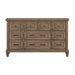 The Mariana 9-Drawer Dresser is a masterpiece of timeless craftsmanship and versatile design, making it a stunning addition to any bedroom. Skillfully crafted from solid Acacia wood and Acacia veneers, this dresser features a rich, hand-distressed Vintage finish with warm walnut accents that gives it an old-world appeal. The dresser's sturdy construction and substantial presence command attention, while its elegant design blends traditional, rustic, and colonial styles, creating a cozy and inviting ambiance. The nine spacious drawers are equipped with masterful dovetail joinery and smooth interiors for snag-free storage, gliding effortlessly on precision-engineered, full-extension drawer glides. Thoughtful details include luxurious velvet-lined top drawers to protect your valuables and a removable jewelry caddy nestled in the top center drawer, adding both elegance and functionality. Perfectly balanced between style and durability, this dresser serves as a captivating focal point in any classic, cozy, or historically inspired space.