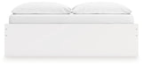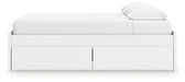 Details Includes platform bed panels, platform rails, roll slats and 4 side storage drawers, Made with engineered wood (MDF/particleboard/plywood) and decorative laminate for the right balance of affordability and durability, Solid white finish, Decorative laminate replicates natural or man-made material surfaces with consistent color, pattern and texture, 4 smooth-gliding storage drawers with ball-bearing side glides; vinyl-wrapped sides and back for durability, Bed does not require additional foundation/box spring; accommodates most zero clearance adjustable bases with the addition of a bunkie board, Mattress available, sold separately, Assembly required