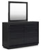 | Details | B768B2: Includes headboard, footboard and rails, Made with pine solids, veneers and engineered wood substrate, Textured black wood stain with waxy topcoat, Extra wide rails for a bench-like wrap around, Foundation/box spring required, sold separately, Mattress available, sold separately, Assembly required, B768B1: Includes dresser and mirror, Made with pine solids, veneers and engineered wood substrate, Textured black wood stain with waxy topcoat, Hardware-less design, 6 drawers with fully finished interiors, dovetail construction and ball-bearing side glides (top drawers felt lined), Mirror attaches to back of dresser, B768-92: Made with pine solids, veneers and engineered wood substrate, Textured black wood stain with waxy topcoat, Hardware-less design, 2 drawers with fully finished interiors, dovetail construction and ball-bearing side glides, 110V power supply with dual USB charging ports, Power cord included; UL Listed, | |
