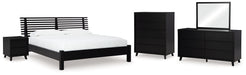 Details B1013B1: Includes headboard, footboard with rails and roll slats, Made with engineered wood (MDF/particleboard/plywood) and decorative laminate for the right balance of affordability and durability, Matte black finish with subtle replicated wood grain, Decorative laminate replicates natural or man-made material surfaces with consistent color, pattern and texture , Bed does not require a foundation/box spring , Mattress available, sold separately , Minor assembly required, B1013B11: Includes dresser and mirror, Made with engineered wood (MDF/particleboard/plywood) and decorative laminate for the right balance of affordability and durability, Matte black finish with subtle replicated wood grain, Decorative laminate replicates natural or man-made material surfaces with consistent color, pattern and texture, 6 smooth-gliding drawers, Drawer interiors are lined with a faux linen laminate for a clean, finished look, Integrated drawer pulls, Framed front and pilasters, Mirror attaches to back of dresser; can also be mounted on wall horizontally or vertically, Safety is a top priority, clothing storage units are designed to meet the most current standard for stability, ASTM F 2057 (ASTM International), Drawers extend out to accommodate maximum access to drawer interior while maintaining safety, Minor assembly required, B1013-345: Made with engineered wood (MDF/particleboard/plywood) and decorative laminate for the right balance of affordability and durability, Matte black finish with subtle replicated wood grain, Decorative laminate replicates natural or man-made material surfaces with consistent color, pattern and texture, 5 smooth-gliding drawers, Drawer interiors are lined with a faux linen laminate for a clean, finished look, Integrated drawer pulls, Framed front and pilasters, Safety is a top priority, clothing storage units are designed to meet the most current standard for stability, ASTM F 2057 (ASTM International), Drawers extend out to accommodate maximum access to drawer interior while maintaining safety, Minor assembly required, B1013-92: Made with engineered wood (MDF/particleboard/plywood) and decorative laminate for the right balance of affordability and durability, Matte black finish with subtle replicated wood grain, Decorative laminate replicates natural or man-made material surfaces with consistent color, pattern and texture, 2 smooth-gliding drawers, Drawer interiors are lined with a faux linen laminate for a clean, finished look, Integrated drawer pulls, Framed front and pilasters, USB and wireless charging options, Power cord included; UL Listed, Minor assembly required,