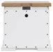 Details B844B2: Includes panel headboard, storage footboard, rails and roll slats, Footboard made with hardwood solids, MDF substrates and butcher block oak veneer, Headboard and rails made with hardwood solids and MDF substrates, White finish, Headboard with inset black metal barn sash, 2 drawers in footboard with fully finished interior, dovetail construction and ball-bearing side glides, Pulls with matte black finish, Bed does not require a foundation/box spring, Mattress available, sold separately, Assembly required, B844B1: Includes dresser and mirror, Made with hardwood solids, MDF substrates and butcher block oak veneer, Dresser with 2-tone finish (white finish; butcher block oak veneer with natural finish), Pulls with matte black finish, 10 spacious drawers with fully finished interiors (top drawers felt lined), dovetail construction and ball-bearing side glides , Drawers with inset picture fronts, Mirror attaches to back of dresser, B844-46: Made with hardwood solids, MDF substrates and butcher block oak veneer, 2-tone finish (white finish; butcher block oak veneer with natural finish), Pulls with matte black finish, 5 spacious drawers with fully finished interiors (top drawers felt lined), dovetail construction and ball-bearing side glides, Drawers with inset picture frame fronts, B844-93: Made with hardwood solids, MDF substrates and butcher block oak veneer, 2-tone finish (white finish; butcher block oak veneer with natural finish), Pulls with matte black finish, 3 spacious drawers with fully finished interiors (top drawers felt lined), dovetail construction and ball-bearing side glides, 110V power supply with dual USB charging ports, Power cord included; UL Listed, Drawers with inset picture frame fronts,