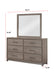 Discover the perfect blend of modern simplicity and understated elegance with this contemporary bedroom collection. Each piece, fashioned with a sleek, minimalist design and a soothing grey oak finish, offers a tranquil backdrop for your personal retreat. The collection is thoughtfully composed of a clean-lined bed frame, a streamlined dresser with ample storage, complemented by a large, practical mirror, and a nightstand that provides easy access to your nighttime essentials.