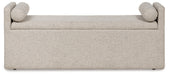 Details Made with solid wood frame, Polyester upholstery, Storage under seat top, Loose bolster cushions included, Casters for easy mobility, Assembly required