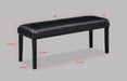 Introducing a harmonious blend of modern sophistication and classic elegance. This dining set showcases a refined faux marble tabletop supported by a distinctively designed black trestle base, creating a striking contrast. Accompanied by sleek chairs, accented with nailhead trim and dressed in a chic leatherette upholstery, this ensemble is a testament to understated luxury. The additional bench seating option promotes communal dining and adds versatility.