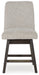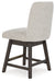 Dressed to thrill, this counter height bar stool offers a high-design look at a down-to-earth price. Ultra-sleek lines are accentuated with a dark waxy brown oak-tone finish that’s so easy on the eyes. Suitably upholstered in a tweed-like neutral fabric, the softly contoured back design is tailor-made for comfort. Whether it's part of a dining arrangement or used as extra seating, this timeless bar stool has a look that’s made to last.